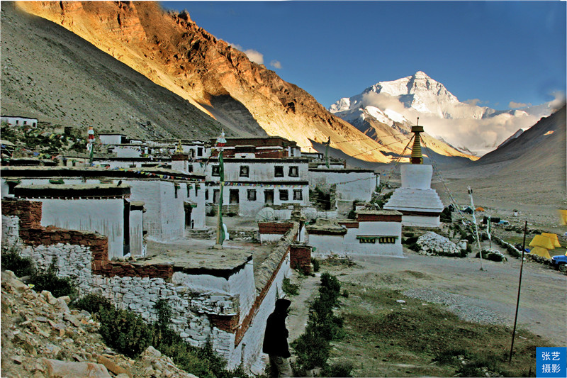 在珠峰大本营,每一座帐篷前都有殷勤的藏族姑娘等候着游客的到来,热忱殷勤地招呼你进帐篷里去喝甜茶,我们在外面跑了这么久了,身体早已冻僵了,喝杯热甜茶暖暖身体是非常需要的。在大本营逗留了一小时,我们就下山往绒布寺住地赶去拍摄日落。