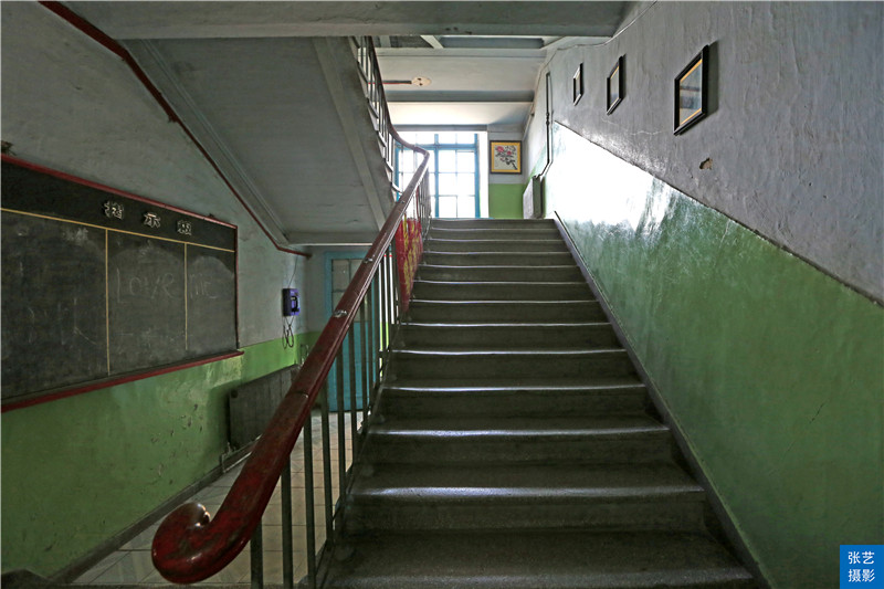 据悉,这座破旧的三层小黄楼就是当年教授音乐课的课室,我在幻想年轻的母亲穿着美丽的布拉吉(连衣裙)她的胳膊上夹着教案在这个生了绣的铁制楼梯上,一级级的往上走去的身影。