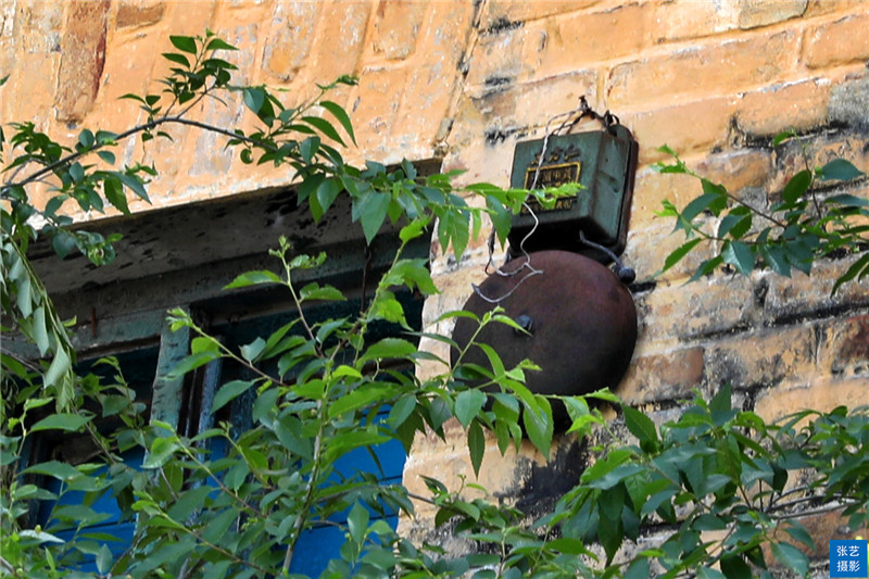 发现教学楼的墙上悬挂了一个生了锈的电铃,看起来也算是“古董”了。