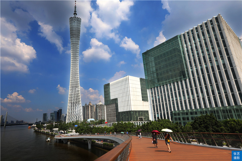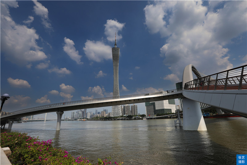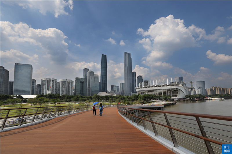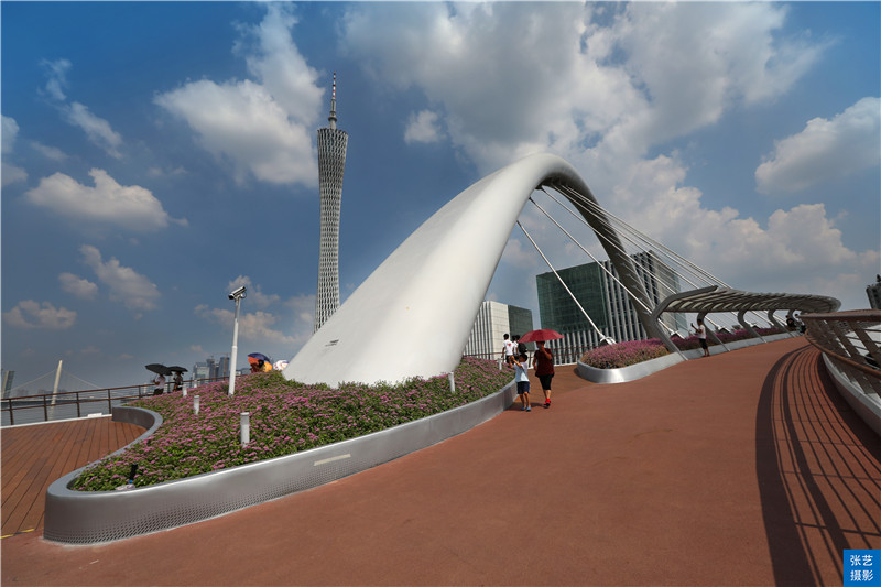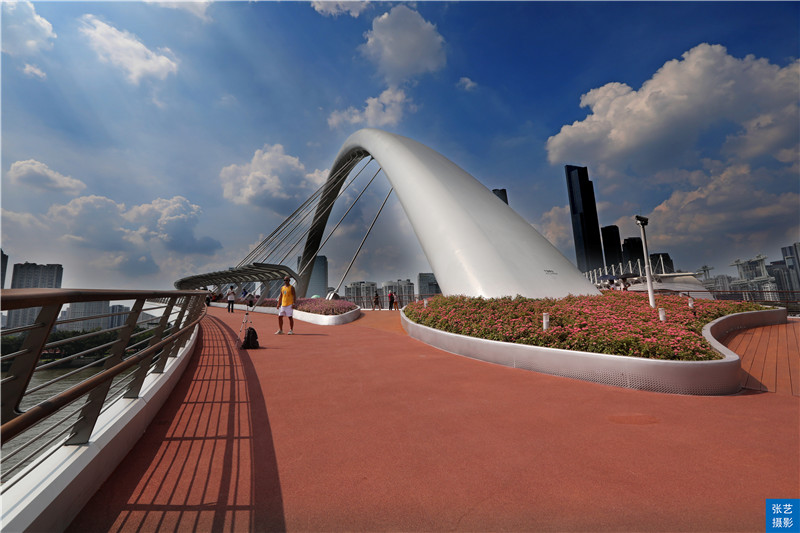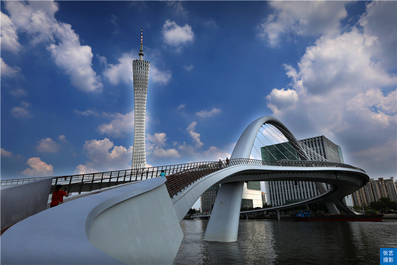 广州变得越来越美丽,以后广州市民可以通过这座世界独一无二的斜拱曲梁人行桥,从花城广场漫步到广州塔了,以后饮早茶走亲戚可以一条龙完成了。