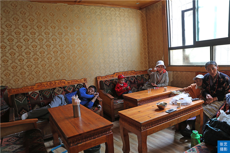 甜茶馆是藏民集中的地方。甜茶馆常常爆满,藏民在这里喝茶、聊天、做游戏等。