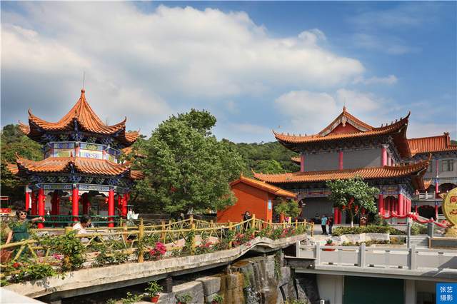 观音山的“鹊桥”凌驾山巅之上,以牛郎织女的典型爱情故事为主题,为天下有情人架设一条真实版的爱情桥梁。