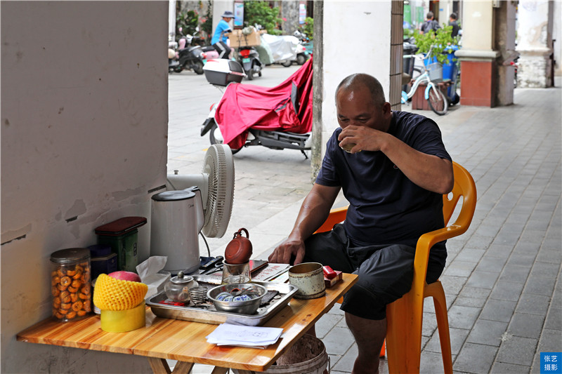 现在是特殊时期,老街上的游客不多,老街上开店的老板边喝茶,边做着生意,这种悠然自得的生活态度,的确让早九晚五的上班族艳羡不已。