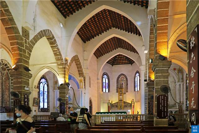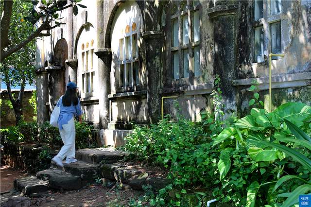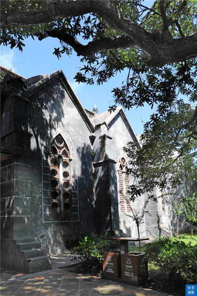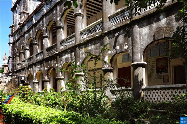 花园的旁边还建有一幢两层高的券廊式神父楼,古朴、雅致,墙身的苔痕、水迹斑驳交错,让人能感觉出它所历经的沧桑与磨难。