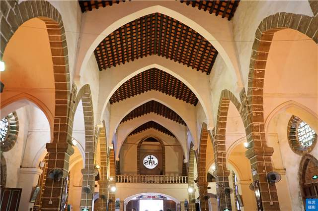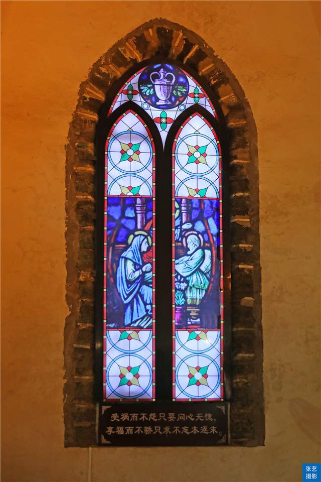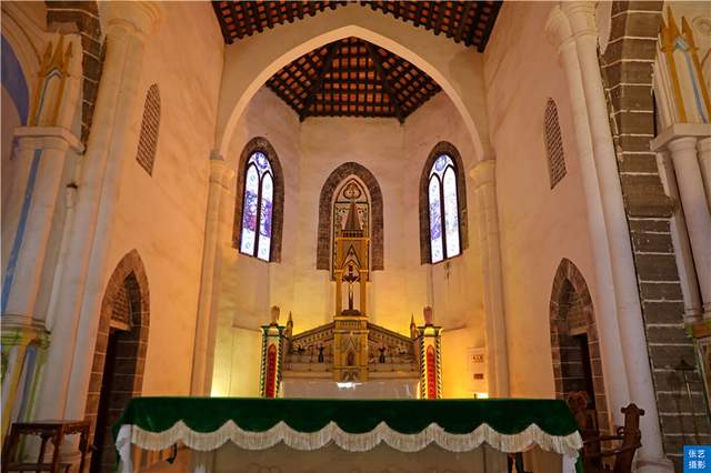 只觉得在高大空旷的穹顶之下,正前方的祭坛上那高耸的十字架,在两傍巨大的彩色花窗与微微泛着黄色灯光的壁灯衬托下显得格外庄严肃穆,让人感到震撼和敬畏。