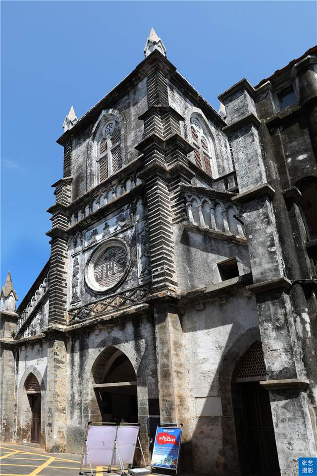 走到教堂跟前,仰望高耸的雄伟、壮观的教堂,当地人介绍到,这座教堂建于1880年,已经存在141年历史了,想不到教堂的主体建筑材料竟然采用当地特有珊瑚石、岩石、石灰拌海石花及竹木红糖混合物作墙坯建造而成,历经一百多年的风雨依然结实坚固。无论从它的设计,还是工程质量在当时来讲还是非常优质的。