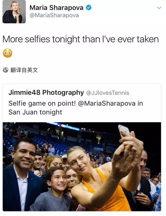 莎娃在Twitter上转发球迷拍摄的照片,并与小球迷Selfie