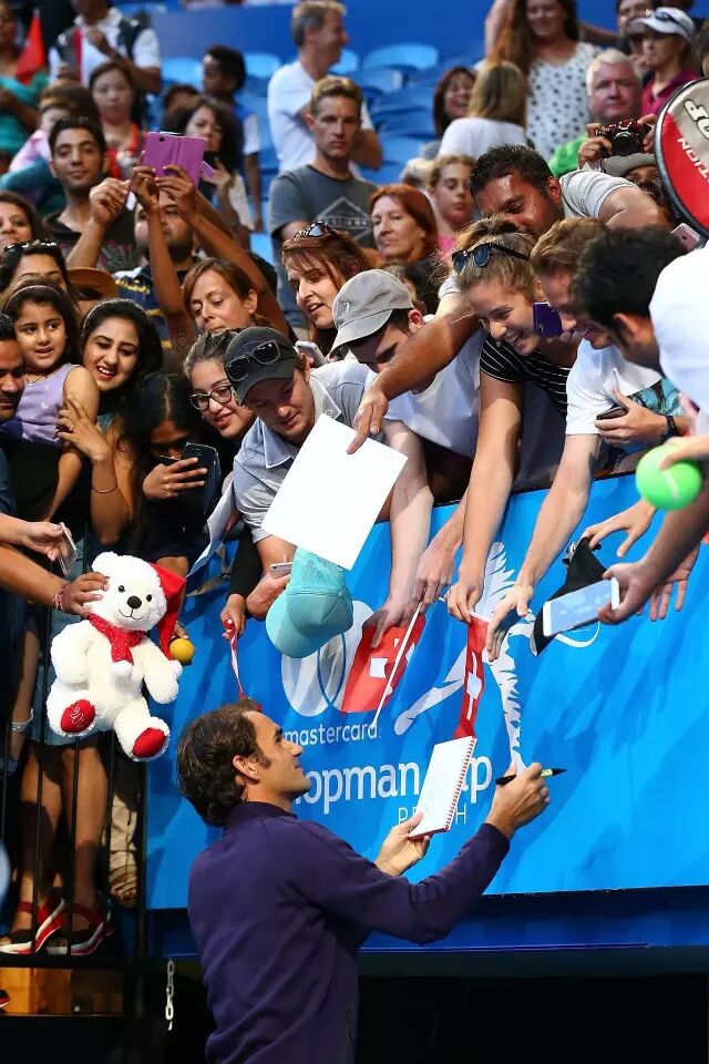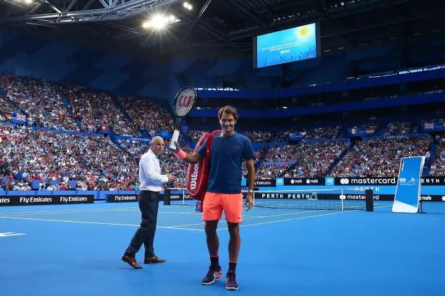 昨天下午,时隔15年再次到访珀斯,即将亮相霍普曼杯混合团体赛的费德勒在自己的首堂赛前训练课中受到了当地球迷的热烈欢迎,共有近6000人来到珀斯体育馆内观看。这的确令人感到非常惊讶,毕竟这还并不是一场正式的比赛。