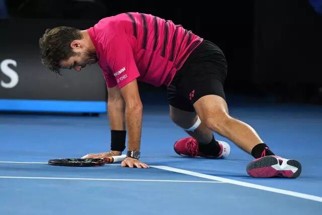 神奇的是,双方的气势也从那一刻起开始发生转移,瓦林卡很快在第三盘开局早早破发,并一鼓作气以6-1轻松赢下这一盘。在4-6再丢一盘后,费德勒也十分罕见的申请了一个伤停。
