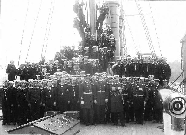 卢克斯号上的德国官兵,应该是八国联军入侵后继续在中国水域活动时所照,该舰编制121名军官和水兵。