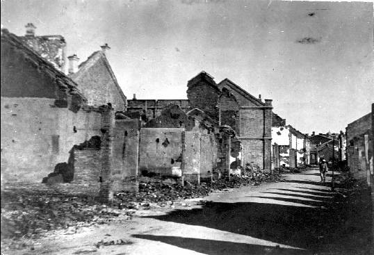 战斗中被击毁的清军炮阵地,可见清军的火炮带有在城墙上移动的滑轨,已经比在第二次鸦片战争中的装备好了很多。