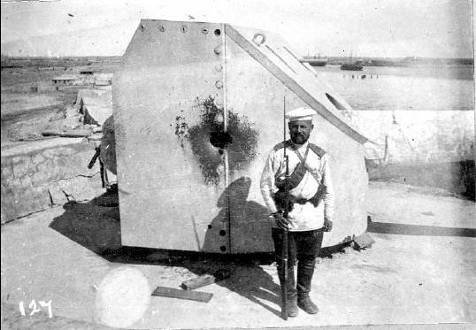 清军炮台奋起抵抗,守将罗荣光负伤后自尽,八国联军也遭到较大损失。这是一艘被击沉的俄国炮舰