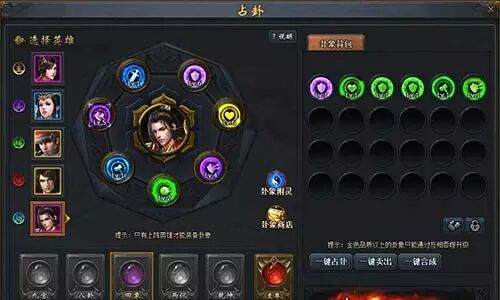 对占卦有了这些初步了解之后,那么问题就来了,应该怎样放置这些不同属性的卦象呢?就拿防御位来说吧,防御位的定位是高防高血高抗,所以卜卦的选择一般是将防御、生命、抗暴、格挡这四类卦象优先配备给防御位。而面对高伤强输出的攻击位来说,前期的伤害绝对高于主角,因此通常选择把攻击、暴击、破格、生命此四类卦象配备给攻击位。主角和美人的卜卦搭配与攻击位则是一样的。而对于辅助位来说,由于武林阵型的调整,往往辅助位是在中间位置容易残血的,建议可搭配多些等级较高的防御生命类卦象。