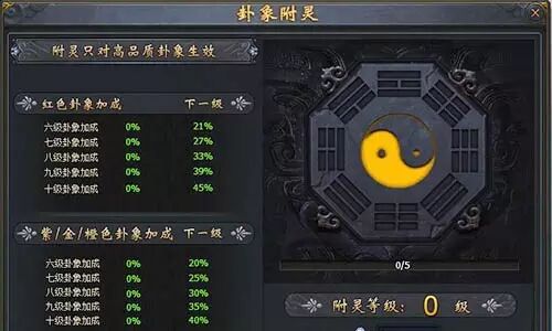 在占卦系统中,卦象的等级并非是一成不变的,而是能够通过吞噬其他卦象来获得经验,进而使卦象等级不断提升,运气来了一跃升至10级也不是不可能的。而如果在占卦中,获得的是自己不需要的卦象怎么办?不用着急,通过分解就能解决这个问题,分解后获得的命力就能在卦象商店中兑换卦象了。此外,针对一些高品质等级的卦象,还能够通过提高卦象附灵等级来提升它们的属性。想要手握无敌的属性记得要利用好至尊占卜这个“必杀技”,通过使用占卜令或者花200元宝获得,就必定能获得高级的紫色卦象,最高等的金色卦象也是有极大可能会出现滴!