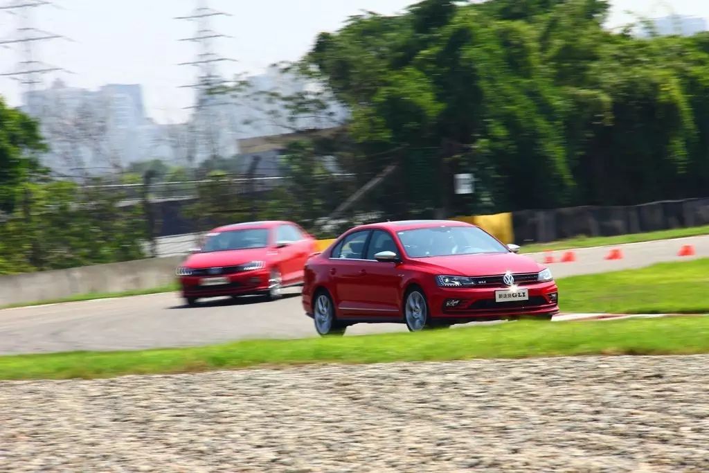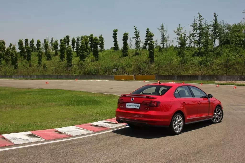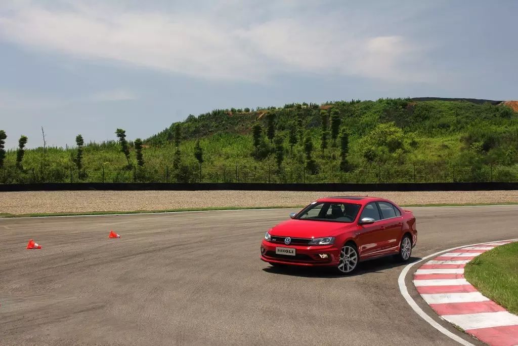 随着教练急促而有力的指令,我驾驶着火红色的新速腾GLI划过成都赛车场的一个又一个弯角。