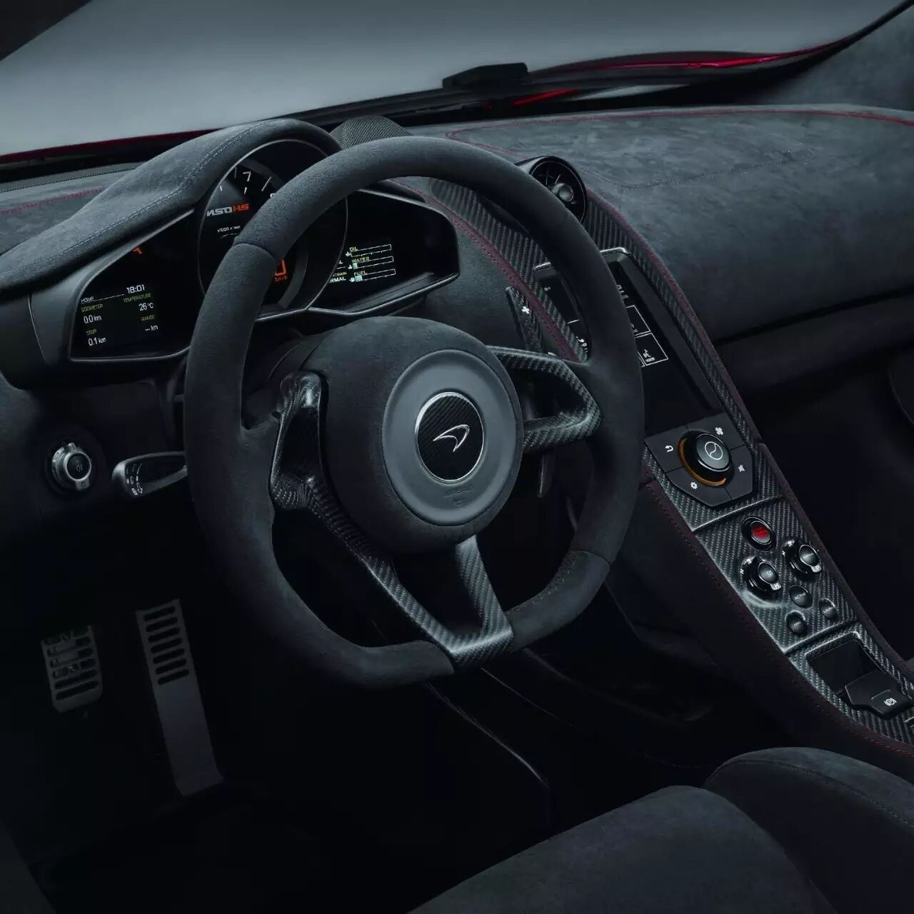 HS的车身上大范围运用了碳纤维材质,所以他比675 LT的质量要更轻。迈凯伦MSO HS的尾部配备有源自迈凯伦P1