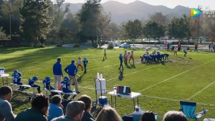 别克的广告倒是贴合橄榄球的主题,场景选在了一个橄榄球场,一帮孩子们正在进行对抗比赛。