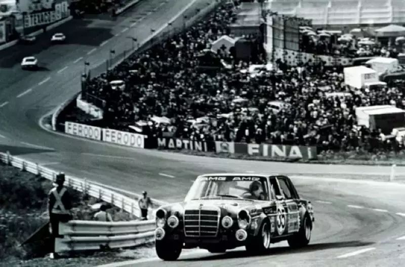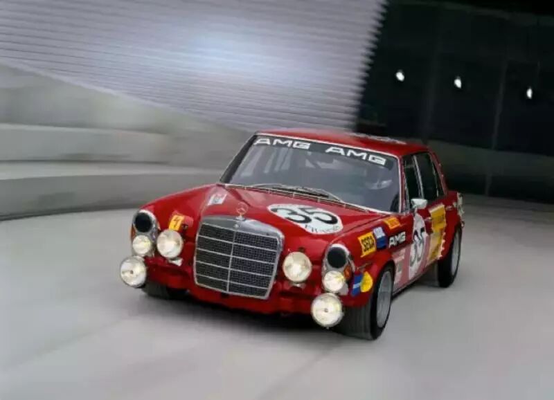 Aufrecht和Melcher实际上都是奔驰曾经的工程师,由于某些原因,当奔驰上世纪50年代淡出赛事后,两位工程师逐渐有了自己对赛车的梦想,并在1965年离开了奔驰公司,于1967年开创了自己的AMG赛车改装公司。事实上,让AMG得以扬名天下的,确是一辆被称作“红猪”的,看上去十分臃肿的300 SEL 6.8 AMG改装车。 1971年6月24日,重达1,635千克的四门车型300 SEL 6.8 AMG在比利时斯帕24小时耐力赛,如一艘飞驰的红色火箭,摘得分组冠军,总排名第二名的傲人赛绩,AMG由此一战成名。