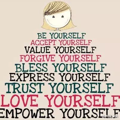 做你自己,接纳你自己,看到你自己的价值,原谅你自己,祝福你自己,表达你自己,信任你自己,爱你自己,为你自己赋予力量。
