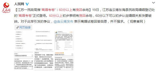 江苏东海县民政局要求来离婚的夫妻填写一份“离婚考卷”。
