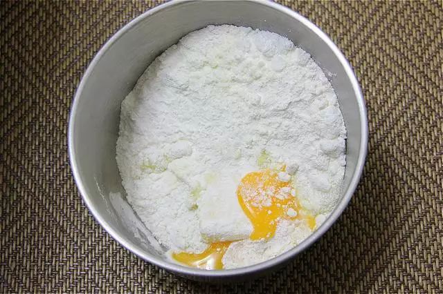 3、发酵面团的时间把菠萝皮的材料混合到一起。