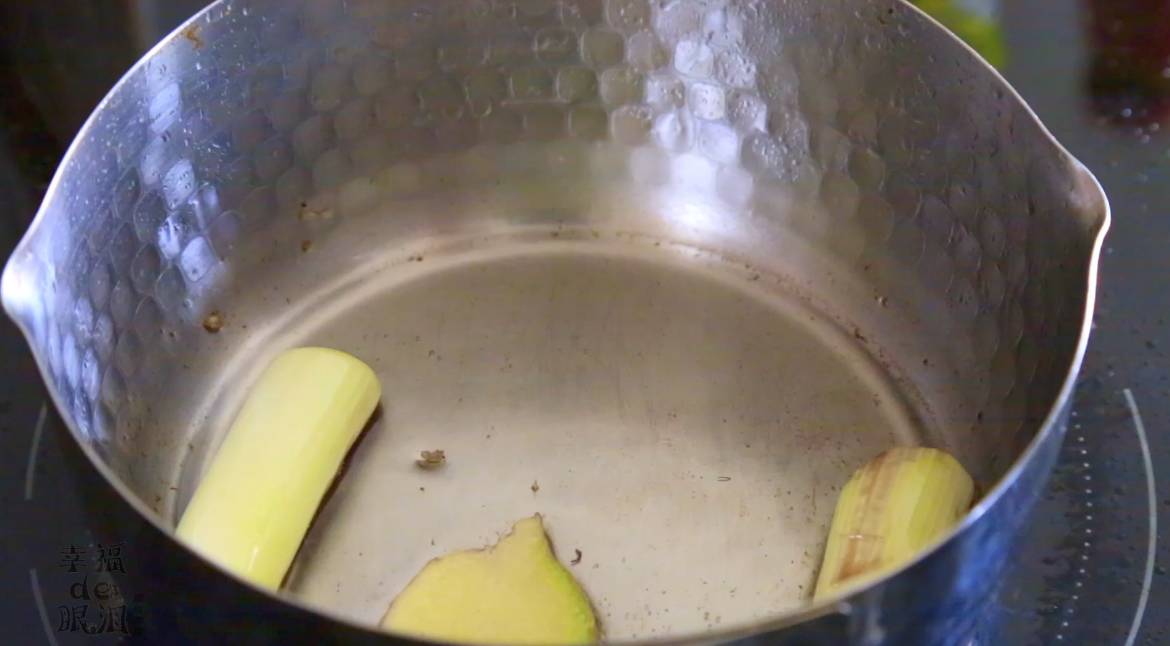 4、锅烧热,放入少量色拉油,放入葱姜炒出香味。