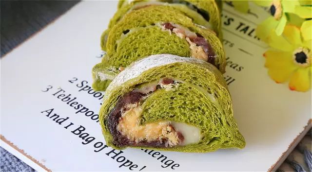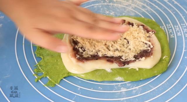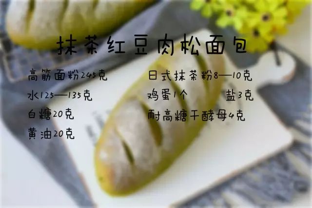 抹茶红豆肉松面包