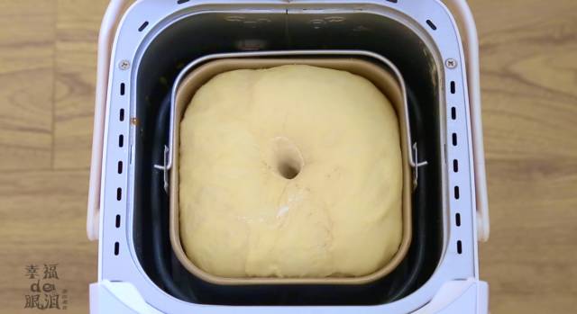 5、面团发酵:一般面团基础发酵温度在28度,湿度为75%,二次发酵温度38度左右,湿度为85%。我一般情况下第一次发酵是放在面包机里发酵的,60—80分钟左右发酵完成,具体时间还要看面团的状态而决定。二发放在烤箱里发酵,这里重点要说如果你的烤箱发酵温度高于40度,不建议打开烤箱的发酵功能,可以像视频里那样接盆热水放在烤箱里,烤盘放在比较靠上的位置,利用热水的温度和湿度来发酵面团,30分钟取出热水试下温度,水凉的话再换一盆热水。热水我们就可以用家里热水器45度热水即可。