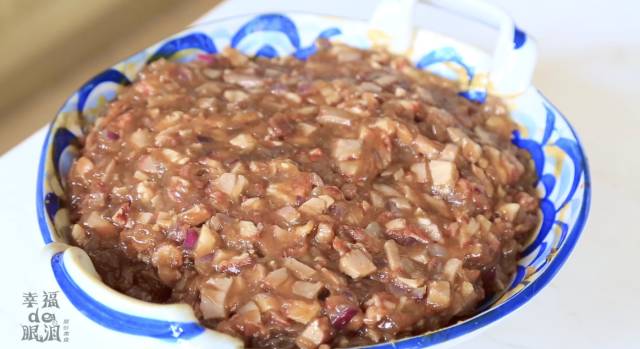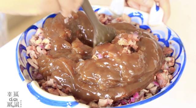 10、叉烧肉和叉烧芡汁的比例最好是1:1.5,叉烧肉375克,加入叉烧芡汁450克。叉烧包内馅就做好了。