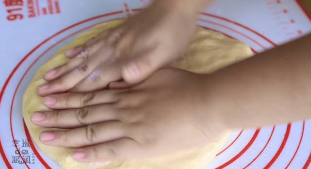 12、把面团倒出来,用手轻拍帮助面团排气。