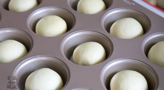 16、烤盘放入烤箱上层,底下放一大碗热水,热水和烤盘要有一定的空隙,就这样关上烤箱门发酵40分钟左右。不需要打开烤箱的发酵功能。热水的温度在45度左右就可以,千万不要放沸水,会把面团烫熟,做出来的面包就不好吃了。我的方法是电热水器可以调节45度热水,我就用热水器里45度的热水,40分钟发酵刚刚好。