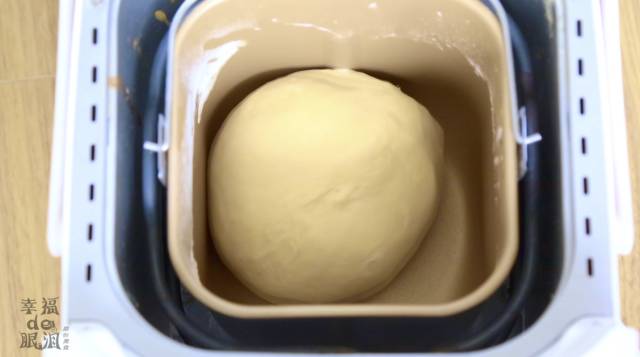 1、把面包体所有材料放进面包机,用2个揉面程序揉至表面光滑,面团成扩展阶段。然后滚圆放进一个容器里,表面盖好保鲜膜进行第一次发酵。