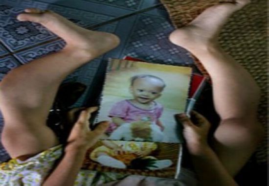 落叶剂主要成分是毒性极大的二恶英,给当地人带来巨大的痛苦。50年后,许多越南新生儿仍无法逃脱厄运。图为:因父母受污染而生下的畸形儿。