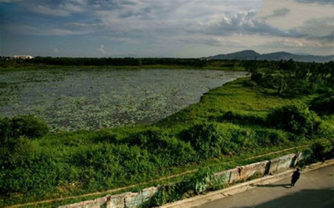 2007年,美国政府出资40万美元,开始答应帮助清理喷撒在越南中部的落叶剂,但关于赔偿问题依然没有达成和解。图为:原美军岘港空军基地附近一处池塘,至今仍然高度污染。
