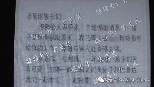 在发给学生家长的一封公开信中,死者称要去香港发展,表达了对学生和家长们的感谢之情。