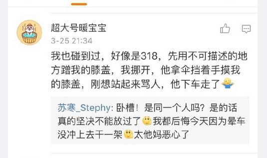 海都记者还在李同学微博曝光的图片中看到,当时车内并不拥挤。评论中看到,有多名网友都表示在公交车上遇到过该男子,并遭到其骚扰。