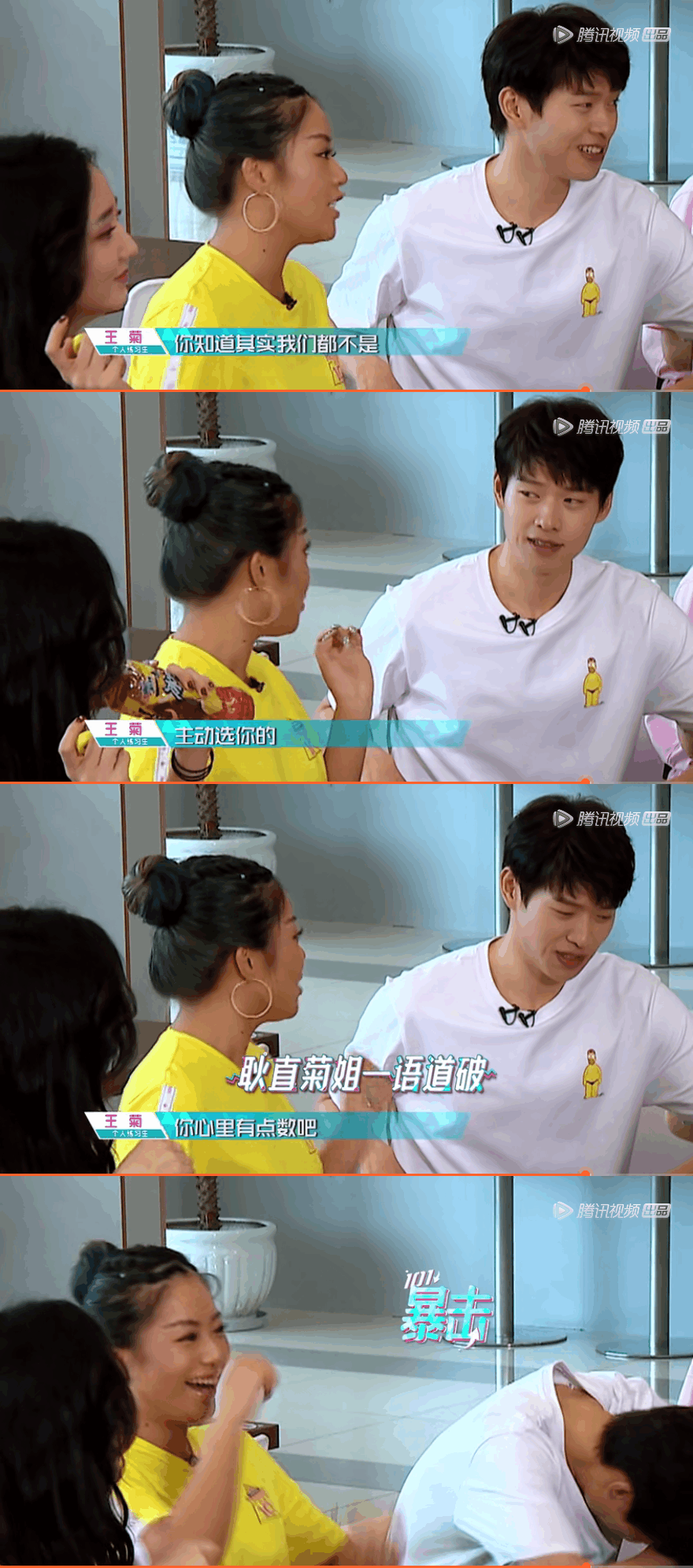 在第二次淘汰时,菊姐晋级,黄子韬问她最喜欢哪个选手,菊姐立刻机智地想到这是个坑,因为说谁都不合适,于是就说了一个已经淘汰的选手的名字。