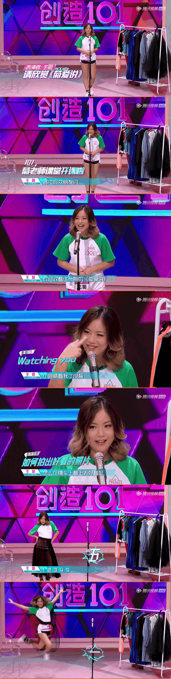 菊姐的唱跳绝对是过关的,她本身从小就学习舞蹈,之后就一直在娱乐圈浸染,在练习时也很刻苦,从来没有掉过链子,几场公演水平发挥正常,甚至创造了“是谁的小眼睛没有看老师”这样的金句,被广为传播。
