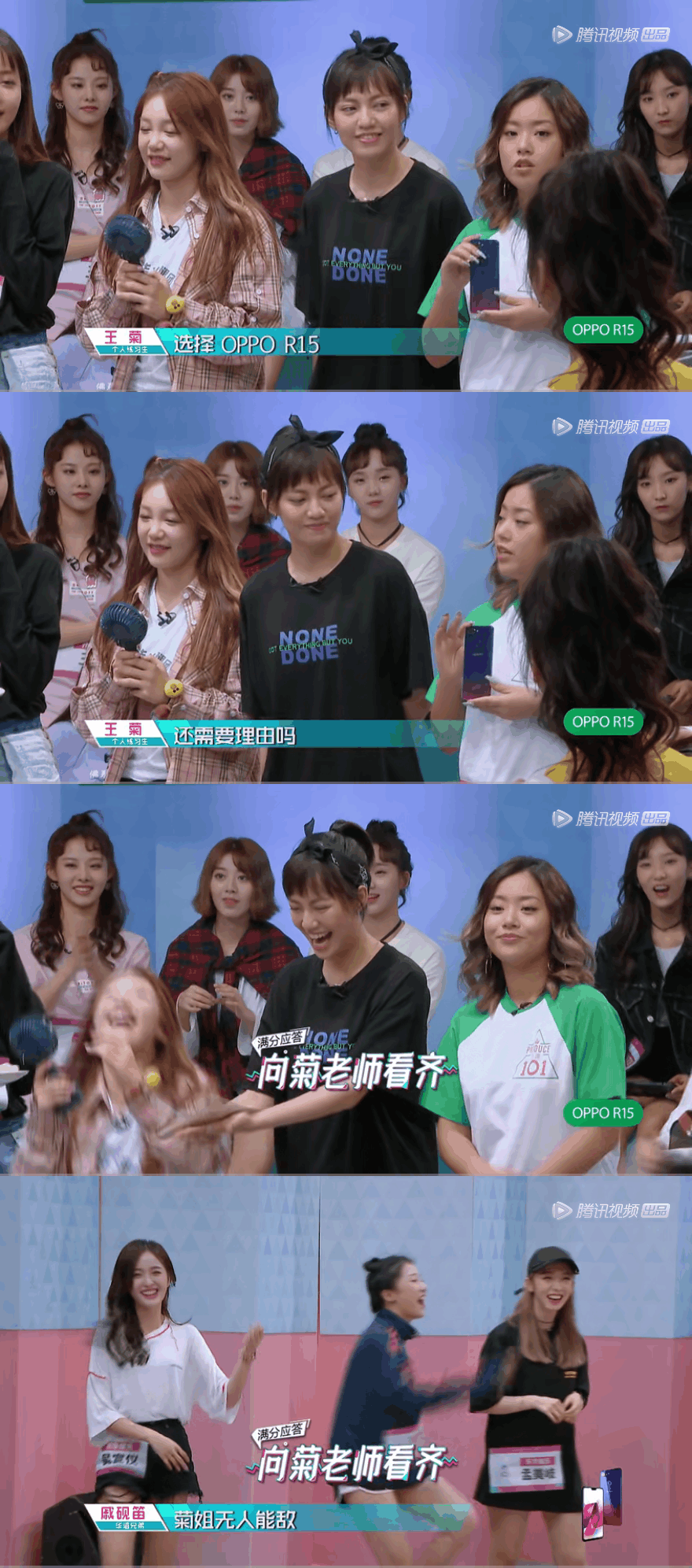 在最新一次公演需要选择“学长”礼物的环节,菊姐挑了手机,黄子韬问她为什么挑手机,菊姐再次机制回答:挑选OPPO