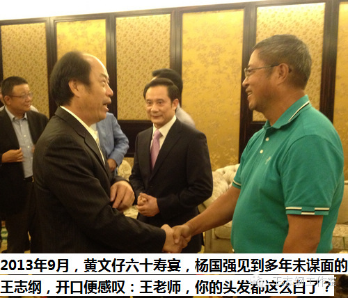 看这张照片,这是去年星河湾老板黄文仔六十寿宴。黄文仔借他60岁生日,把杨国强、许家印、朱孟依等全国主要房地产开发商老板全聚在了一起。