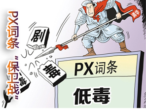 而此时的PX百度百科词条成为新焦点,PX已被网民改为“剧毒”。为打消民众疑虑,有关部门迅速行动,清华大学的化工系学生们组织起来,开始以科普的身份讲PX词条修改为“低毒”。由于百度百科词条是开放的,对这一善举,网民们并不买账,清华学生一改毕,网民又将PX改回为剧毒,如此一来一往,你攻我守大战28个回合。但清华有限的大学生毕竟抵挡不住无限的网民,即使清华学生们不吃不睡,也无法保卫PX词条不被再修改为“剧毒”。最后只好由权力部门介入,五天以后,百度百科采用了清华化工系提交的官方PX相关介绍,百度百科将PX锁定在“低毒”属性上。至今PX词条仍属于锁定状态,网民无权再对此修改。