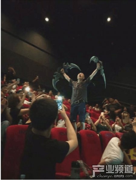 3、福州某影院,一名玩家在首映开场之前双手高举埃辛诺斯战刃,高声呼喊:“为了部落!”