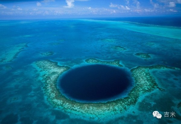 在伯利兹海面上有很多蓝洞,但是邻近灯塔礁(Lighthouse