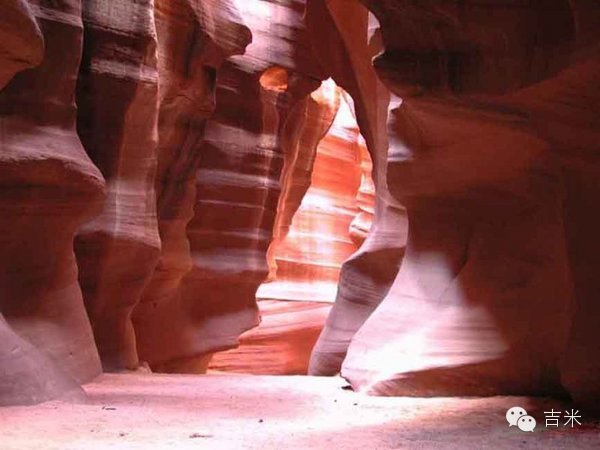 羚羊峡谷的地质构造是著名的红砂岩,谷内岩石被山洪冲刷得如梦幻世界。羚羊峡谷的出口只有一人多宽,山洪经常从这里以惊人的力量喷涌而出。