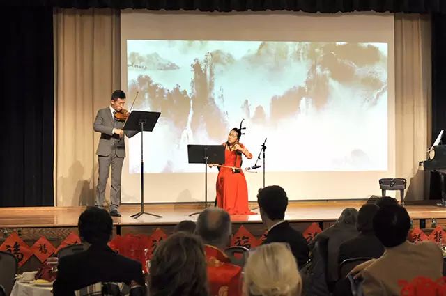 红黄蓝艺术团的演出在热烈欢快的二胡和钢琴双重奏《春节序曲》中拉开序幕,西洋乐器钢琴与民族乐器二胡完美融合在一起,渲染出喜气洋洋、载歌载舞的春节氛围。红黄蓝艺术团带来了中国民族歌舞《天路》《小女二八》、二胡独奏《赛马》《喜洋洋》、二胡与小提琴二重奏《渔舟唱晚》《洪湖水浪打浪》、民族歌曲《万事如意》《春天的芭蕾》等精彩的节目,现场时时爆发热烈的掌声。中西文化在音乐中交融,现场观众在优美的旋律中品味中国年。