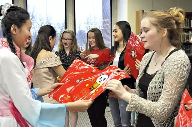 红黄蓝艺术团老师赠送给学生们中国传统福包