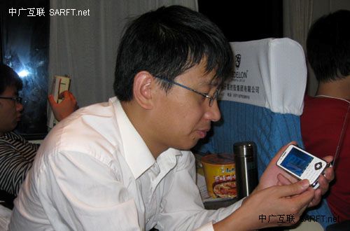 在往返的旅途上,中广互联(备注:笔者为下图拿手机者)仍是沿用了“笔者十一期间东北之行”的“套数与打法”——继续拿着CMMB手机电视与地面模拟电视两款不同制式的手机终端设备在火车所经过的不同城市间进行信号的测试。