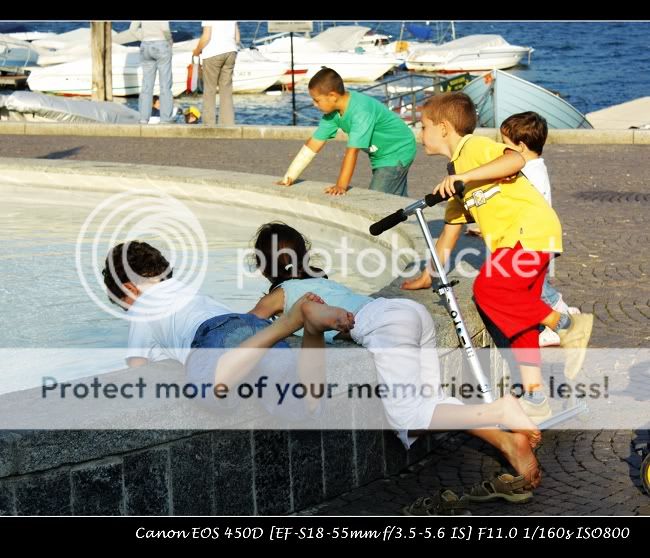 OK, 那就不拍吧。正想着是可能英国人比较矜持,却听见那女人跟另一个同行的女子用道地的意大利语聊天。原来是意大利人。意大利老百姓大多不会英语,即使我那些做了几十年英美国家生意的意大利客户,虽然英语说得是很流利了可是仍有明显的意大利口音,害得我呆了十几年都“近墨者黑”了。可这个看护一样的女子却一口英国腔,再看看小宝贝们的衣服的质地,我猜到了七八分:估计是有钱人家的小孩呢!这湖边跑来啥有钱人都不稀罕,安杰利亚茱莉当初挺着大肚子也还跟着布拉德皮特跑到这湖边乔治克鲁尼的别墅里度假。不过有钱人的日子多无聊啊,随便看到一个镜头对着小孩,就当人家是狗仔或者预备绑架的, 真是太无趣了。说一句充满阿Q精神的话, 俺这一辈子才不想做大富豪呢,绝不, 呵呵。