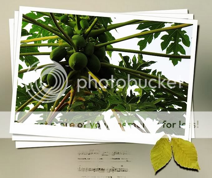 雨继续下的时候, 我一边喝汤,一边翻出夏天在涠洲拍的照片。喏,下面这张就是木瓜了。记得当初阿鱼阿溪去找住处了,俺赶紧骄傲地卖弄: “风同学,快过来!这个不认识吧?木瓜!”其实,俺也就认识些木瓜木菠萝芒果芭蕉之类, 再冷门的东西只能等着阿鱼阿溪来上课了:) http://i308.photobucket.com/albums/kk348/sofiacomo/IMG_0354.jpg?t=1226078541