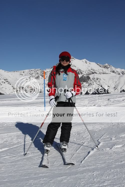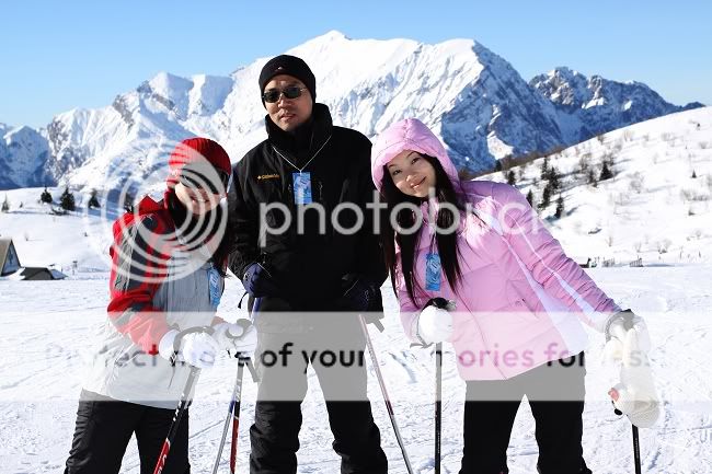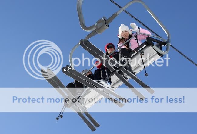 这是俺和大美人小云在通往滑道顶端的缆车上。小云不但长得漂亮,而且在女孩子里面真算得上“胆大包天”的。据说该同学在没有任何人指导不懂得拐弯和刹车的情况下就勇敢地跑到滑雪场玩了两次,结果是经常摔出去七八米,得等路人帮她把雪板捡回来。但是这丫头绝顶聪明,这次运动健将长腿叔叔只是稍微给她指点了两下,把拐弯和刹车的基本要领告诉她了,人家就稳稳当当地从蓝道顶上一路滑了下来,而且一整天下来,也就是尝试新动作的时候跌过一次,就越滑越顺啦,惹得因为心疼相机没有穿上滑雪板的超视觉同学无比嫉妒地说:“你是不是现在觉得很过瘾啊?” 小云把漂亮的大眼睛一闭,慢悠悠地吐出几个字:“我现在觉得滑雪真是享受啊~~~” 哈哈。